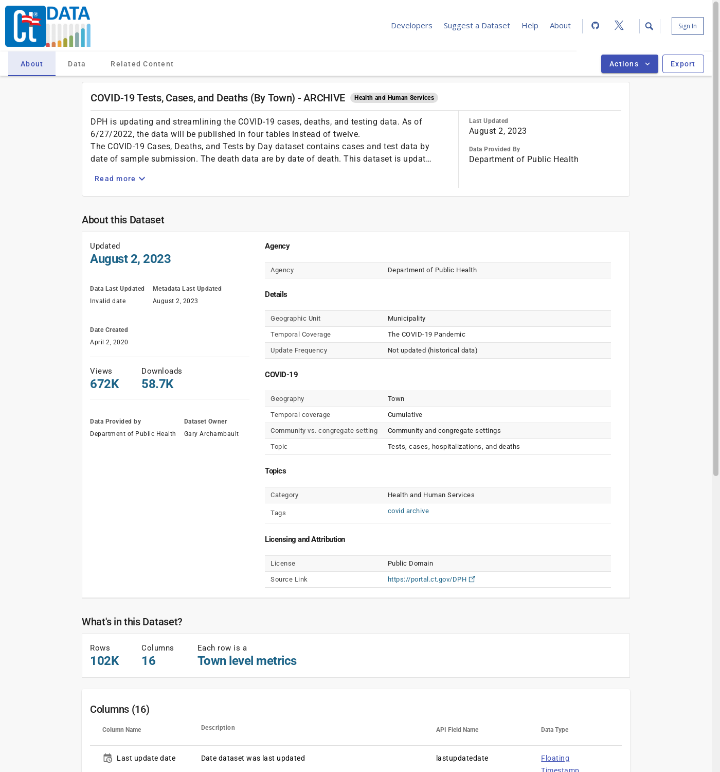 | Identifier | URL:https://data.ct.gov/Health-and-Human-Services/COVID-19-Tests-Cases-and-Deaths-By-Town-/28fr-iqnx |