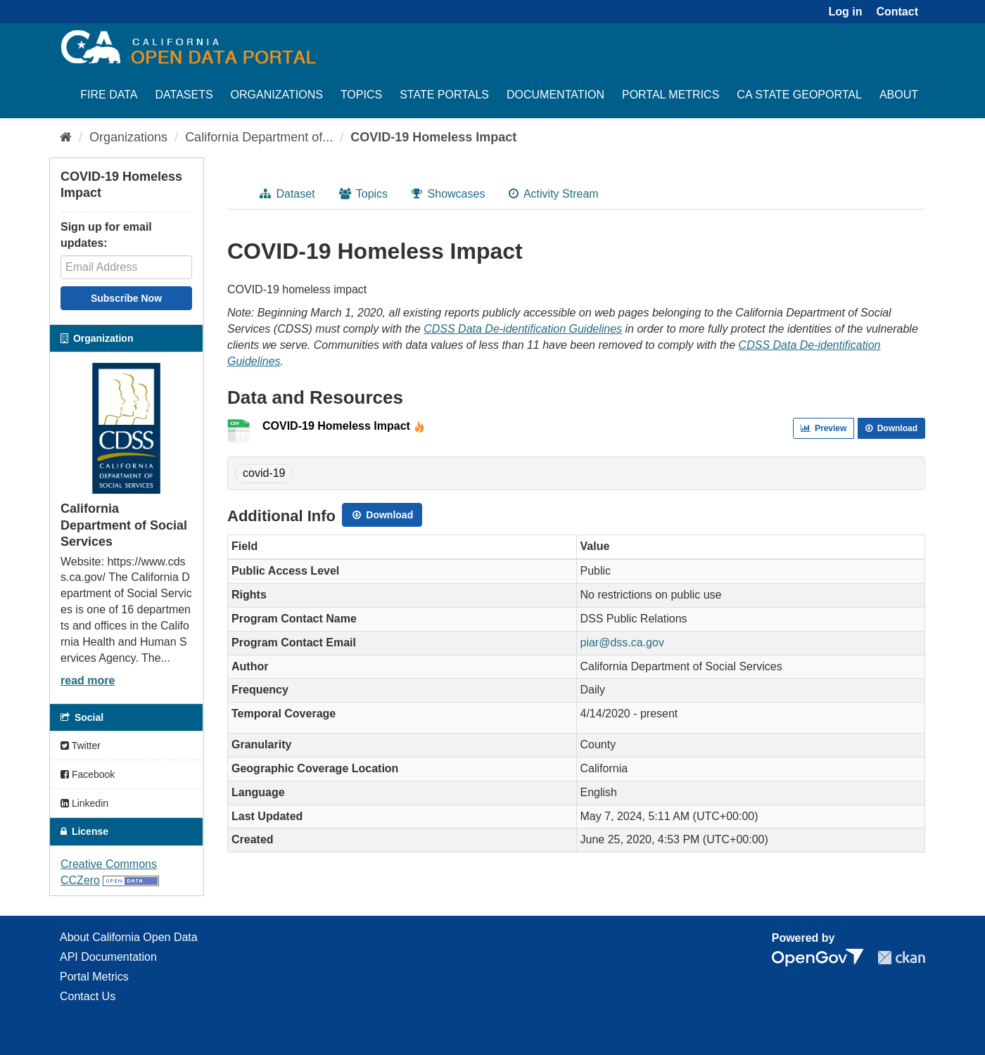 | Identifier | URL:https://data.ca.gov/dataset/covid-19-homeless-impact |